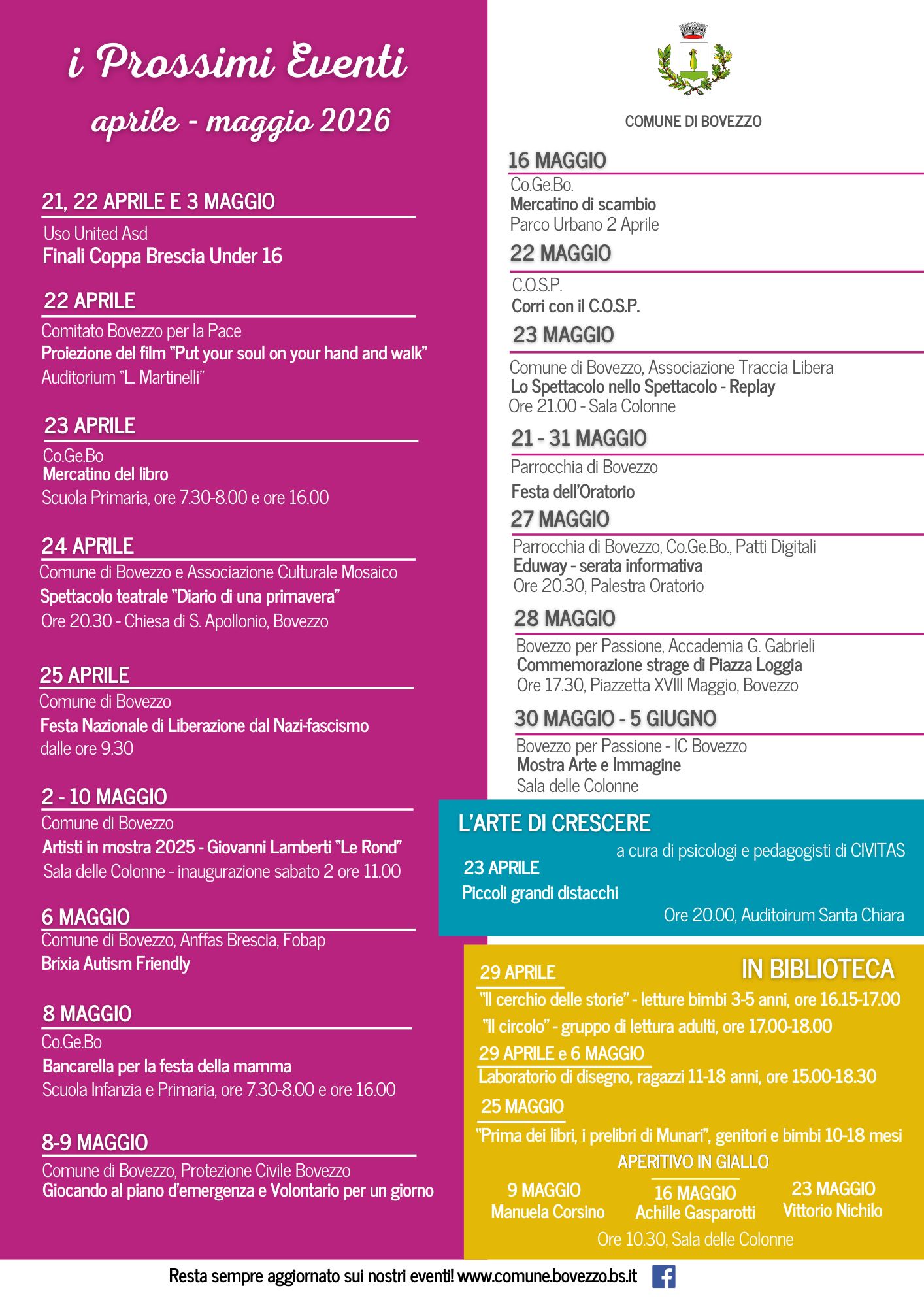 Gli Eventi in Programma nei Mesi di Aprile e Maggio 2026