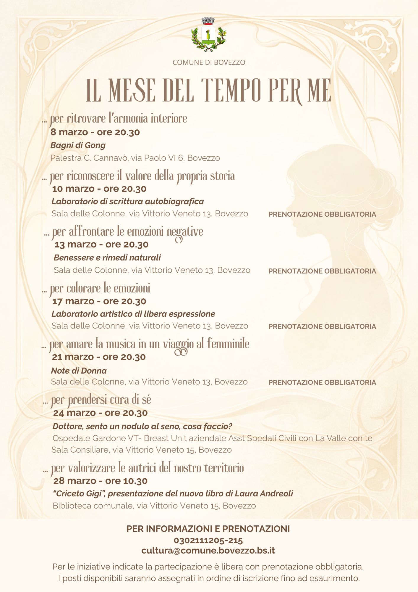 Il Comune di Bovezzo organizza nel mese di marzo la rassegna "Il Mese del Tempo per Me",